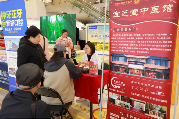 春风送暖,健康同行。为切实将优质中医健康服务送到群众身边,普及春季养生知识,践行社会责任,3月28日,成都宝芝堂中医馆受邀走进锦江万达广场,开展了公益义诊活动,以专业医术传递关爱,用贴心服务守护市民健康,赢得了现场群众的广泛好评。